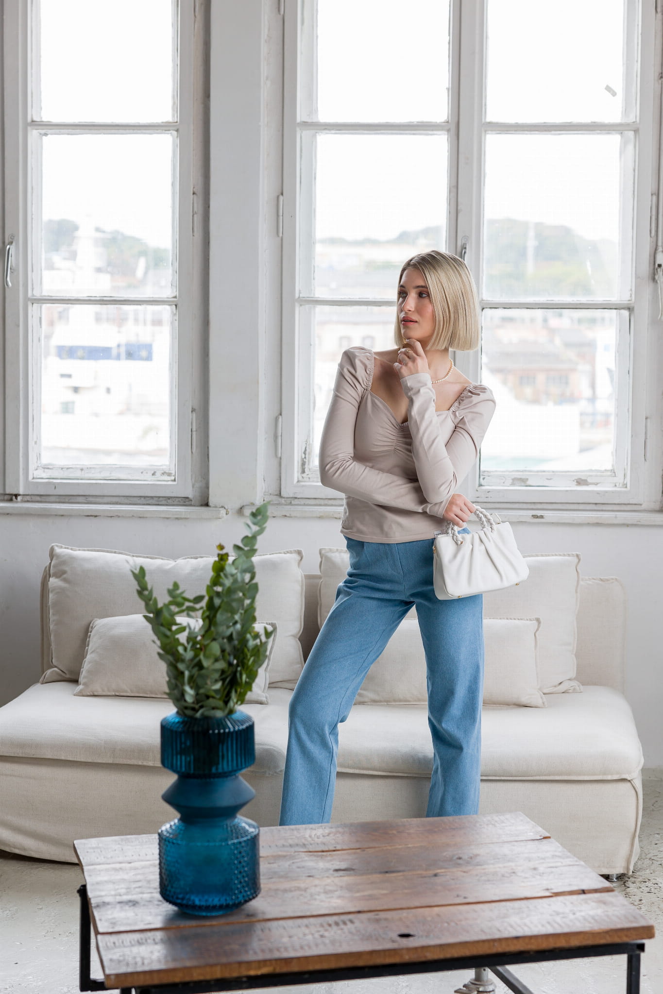 Bluzka ARIA to kwintesencja romantycznego stylu w nowoczesnym wydaniu. Delikatne marszczenie przy dekolcie subtelnie podkreśla biust, a lekko bufiaste rękawy na gumce nadają sylwetce lekkości i finezji. To model, który dodaje wdzięku i sprawia, że każda stylizacja staje się wyjątkowa.