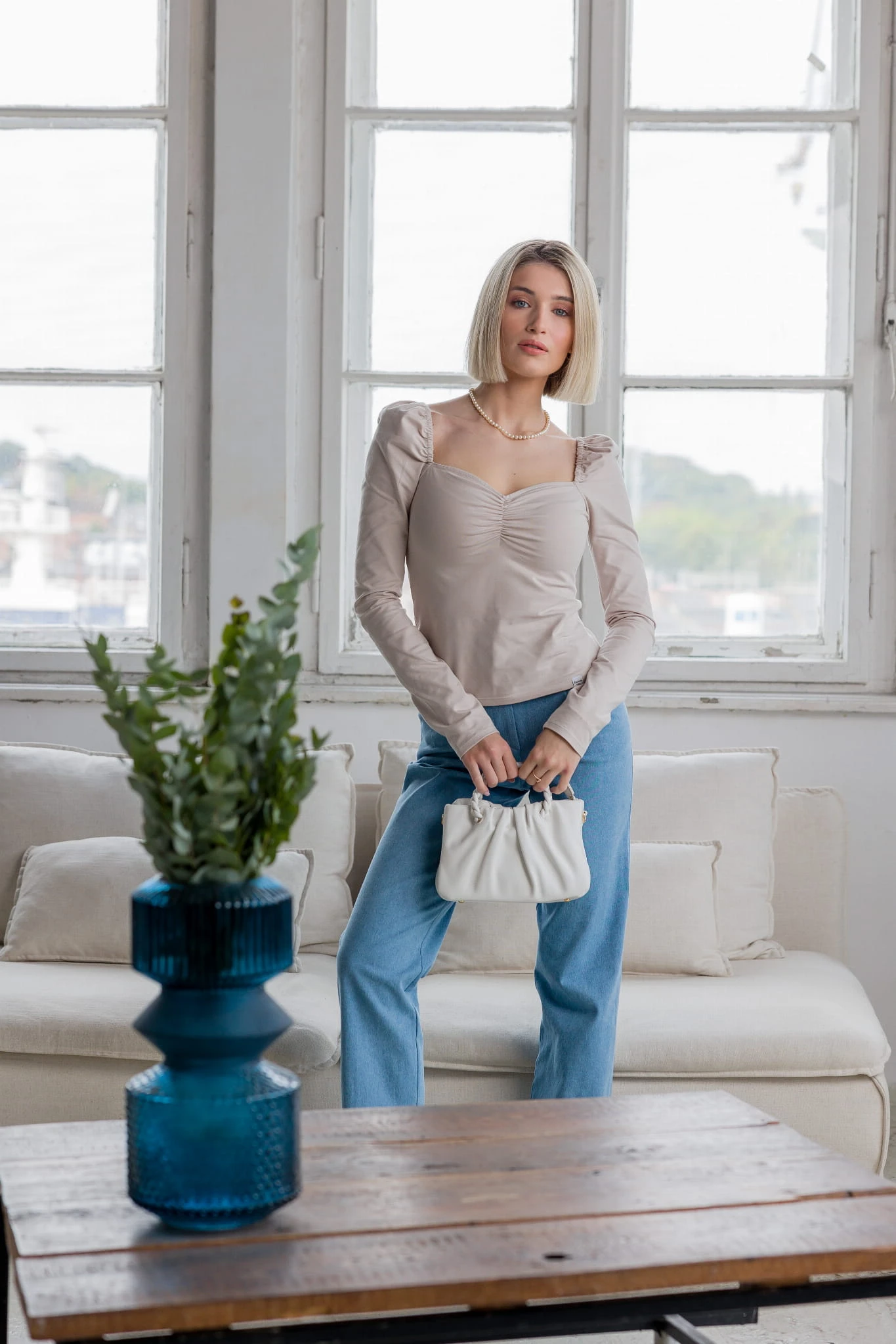 Bluzka ARIA pięknie otula sylwetkę, podkreślając jej atuty. Dopasowany krój z delikatnym marszczeniem przy dekolcie pięknie podkreśla biust. Bufiaste rękawy nadają lekkości i optycznie wyrównują proporcje.