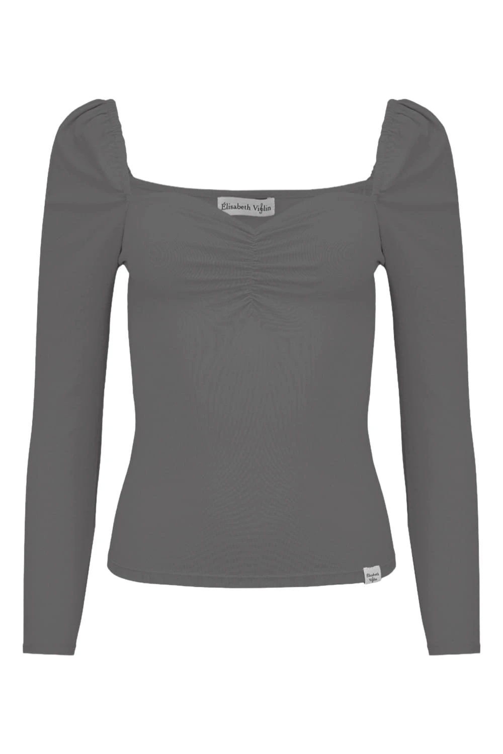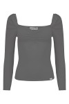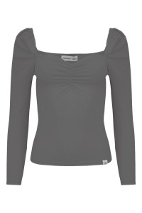ARIA - Charcoal Gray - wiskozowa taliowana bluzka z marszczonym dekoltem serce i rękawami 3/4 na gumce
