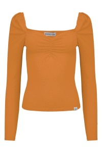 ARIA - Golden Ochre - bambusowa taliowana bluzka z marszczonym dekoltem serce i długimi rękawami na gumce