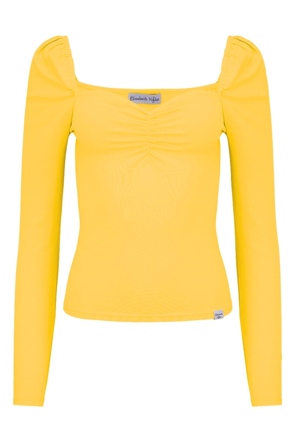 ARIA - Habañero Gold - bawełniana taliowana bluzka z marszczonym dekoltem serce i długimi rękawami na gumce