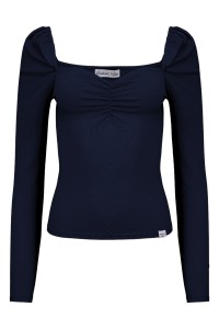 ARIA - Medieval Blue - bambusowa taliowana bluzka z marszczonym dekoltem serce i długimi rękawami na gumce