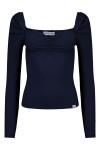 ARIA - Medieval Blue - wiskozowa taliowana bluzka z marszczonym dekoltem serce i długimi rękawami na gumce