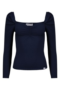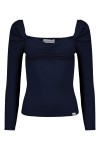 ARIA - Medieval Blue - wiskozowa taliowana bluzka z marszczonym dekoltem serce i rękawami 3/4 na gumce