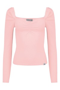ARIA - Misty Rose - bambusowa taliowana bluzka z marszczonym dekoltem serce i długimi rękawami na gumce