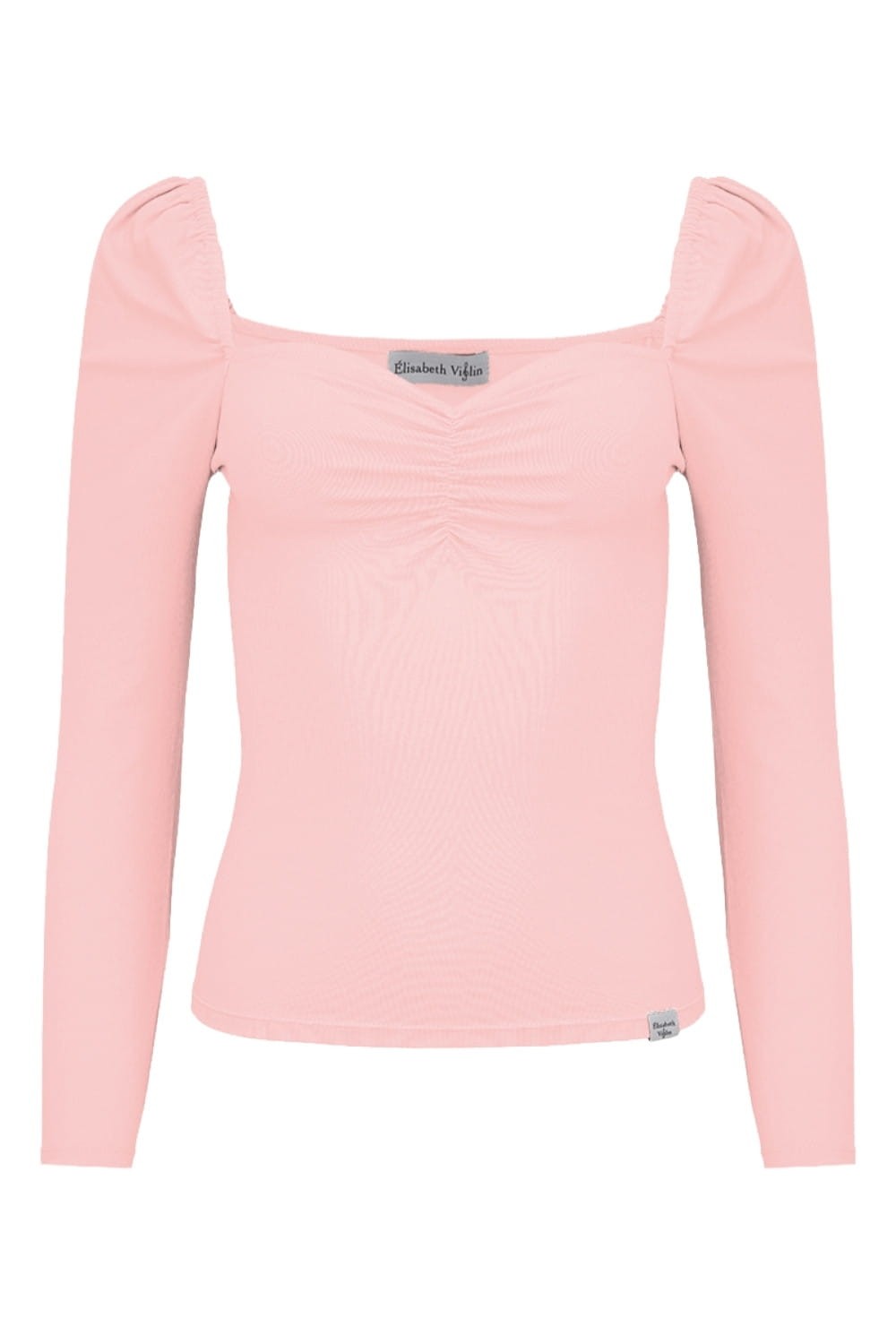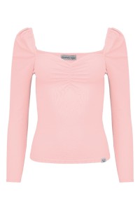 ARIA - Misty Rose - wiskozowa taliowana bluzka z marszczonym dekoltem serce i rękawami 3/4 na gumce