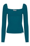 ARIA - Moroccan Blue - wiskozowa taliowana bluzka z marszczonym dekoltem serce i długimi rękawami na gumce