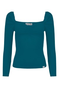 ARIA - Moroccan Blue - wiskozowa taliowana bluzka z marszczonym dekoltem serce i rękawami 3/4 na gumce