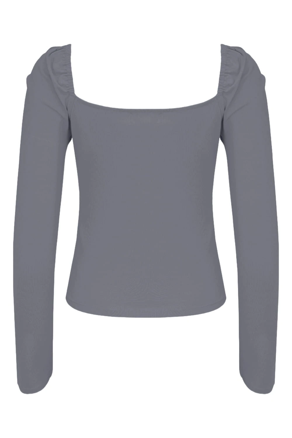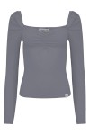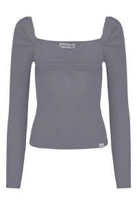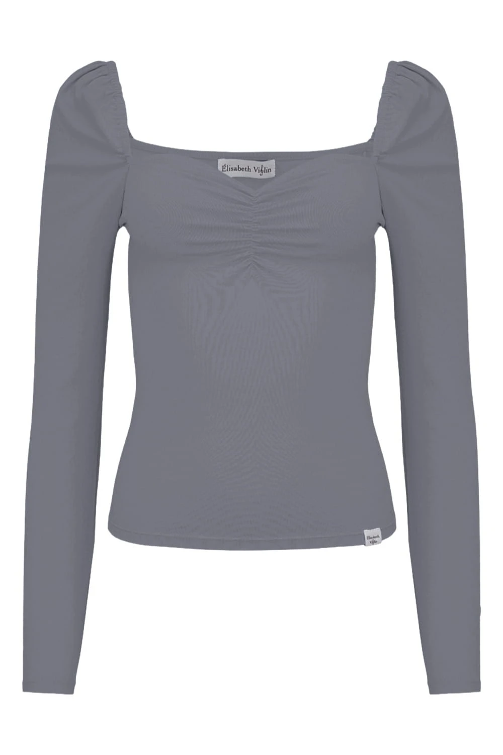 ARIA - Quiet Shade - bambusowa taliowana bluzka z marszczonym dekoltem serce i długimi rękawami na gumce