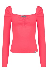 ARIA - Rouge Red - wiskozowa taliowana bluzka z marszczonym dekoltem serce i długimi rękawami na gumce