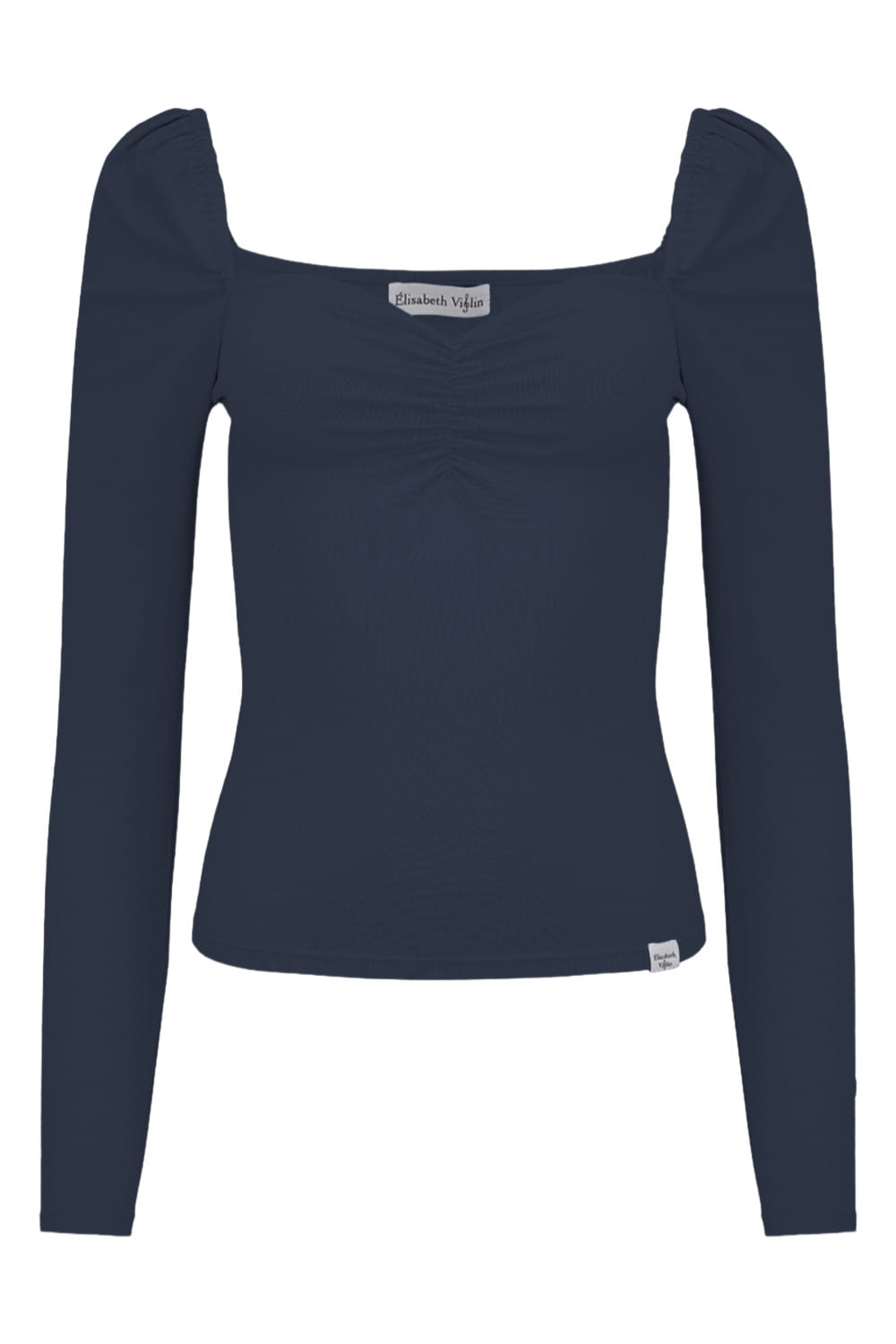 ARIA - Sargasso Sea - bawełniana taliowana bluzka z marszczonym dekoltem serce i długimi rękawami na gumce