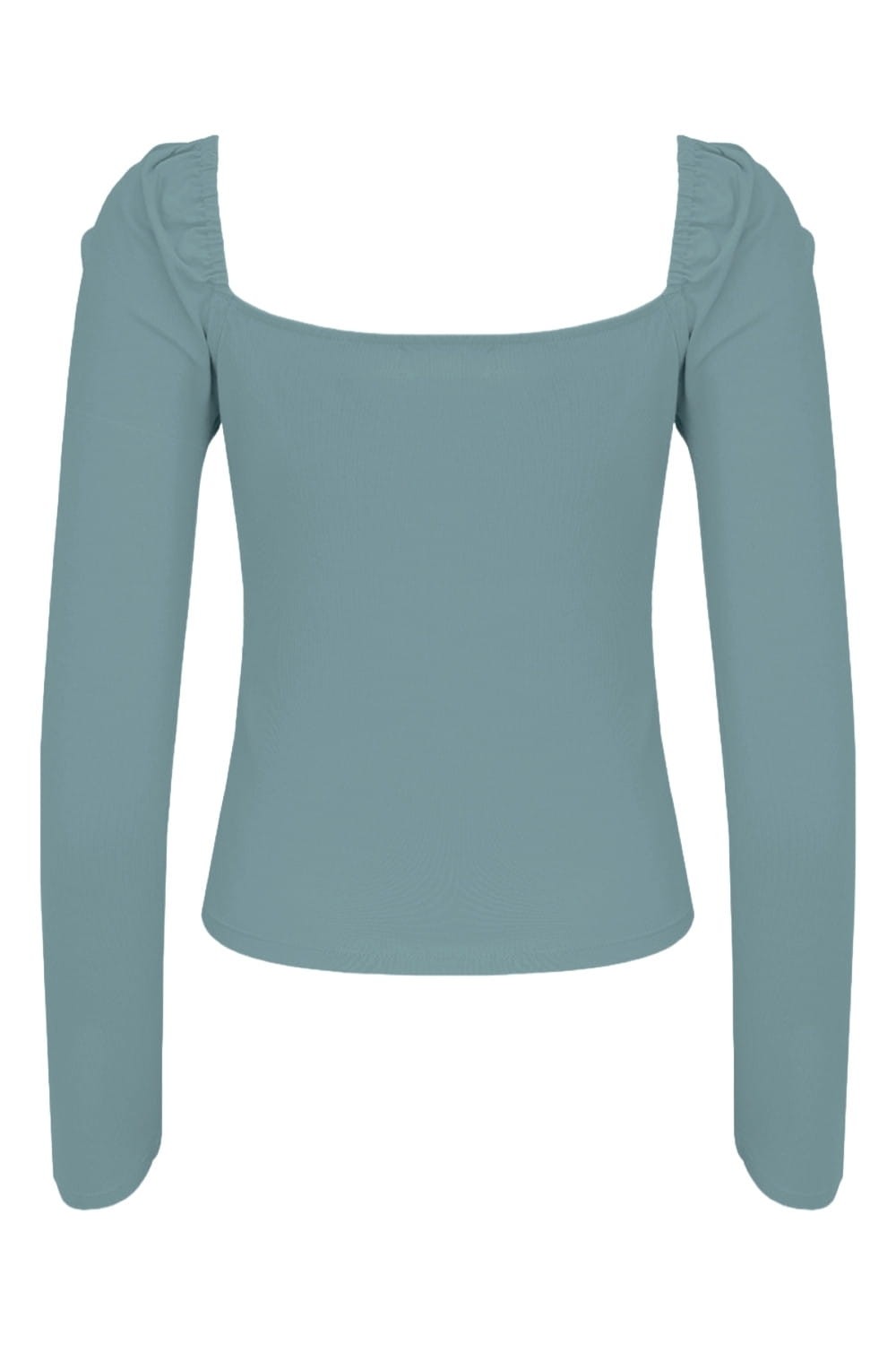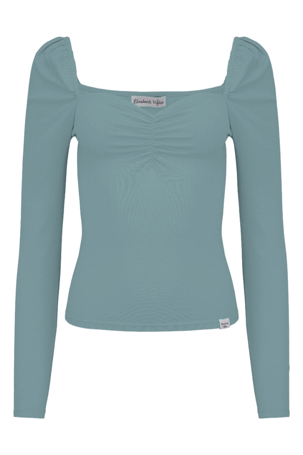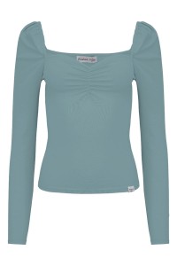 ARIA - Smoke Blue - bawełniana taliowana bluzka z marszczonym dekoltem serce i długimi rękawami na gumce