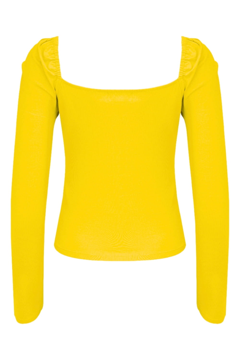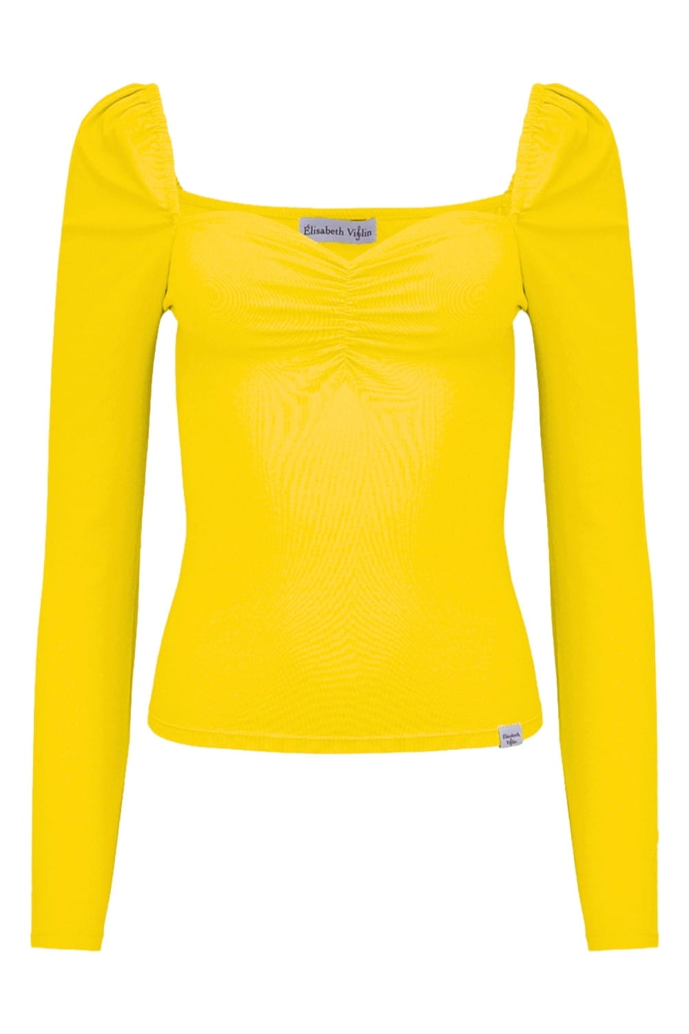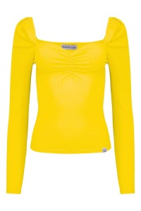 ARIA - Solar Power - bambusowa taliowana bluzka z marszczonym dekoltem serce i długimi rękawami na gumce