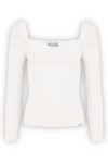 ARIA - Star White - wiskozowa taliowana bluzka z marszczonym dekoltem serce i rękawami 3/4 na gumce
