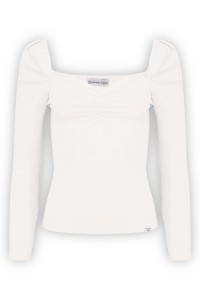 Modelka ma na sobie bluzkę z długim rękawem.