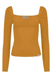 ARIA - Sudan Brown - wiskozowa taliowana bluzka z marszczonym dekoltem serce i długimi rękawami na gumce