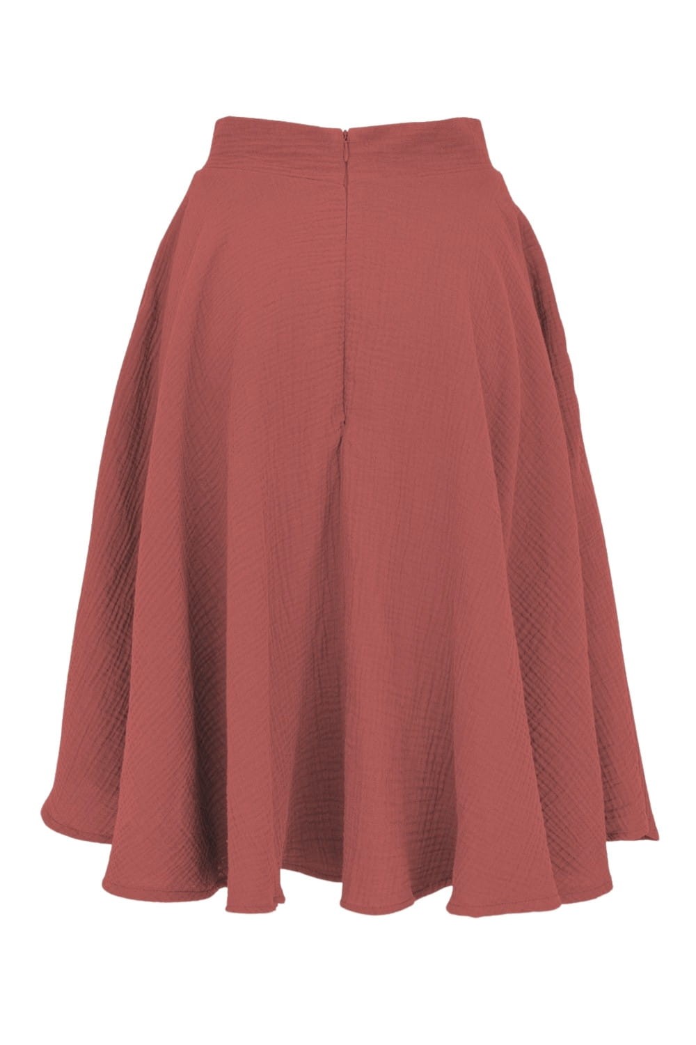 !!! WAŻNE - modelka ma na sobie spódniczkę wykonaną z innego materiału - gładkiej bawełny, który niebawem również pojawi się na stronie. Aby zobaczyć, jak wygląda struktura materiału "muślin bawełniany", przyjrzyj się pierwszemu zdjęciu. Modelka ma na sobie spódniczkę o długości do kolan - 60 cm.