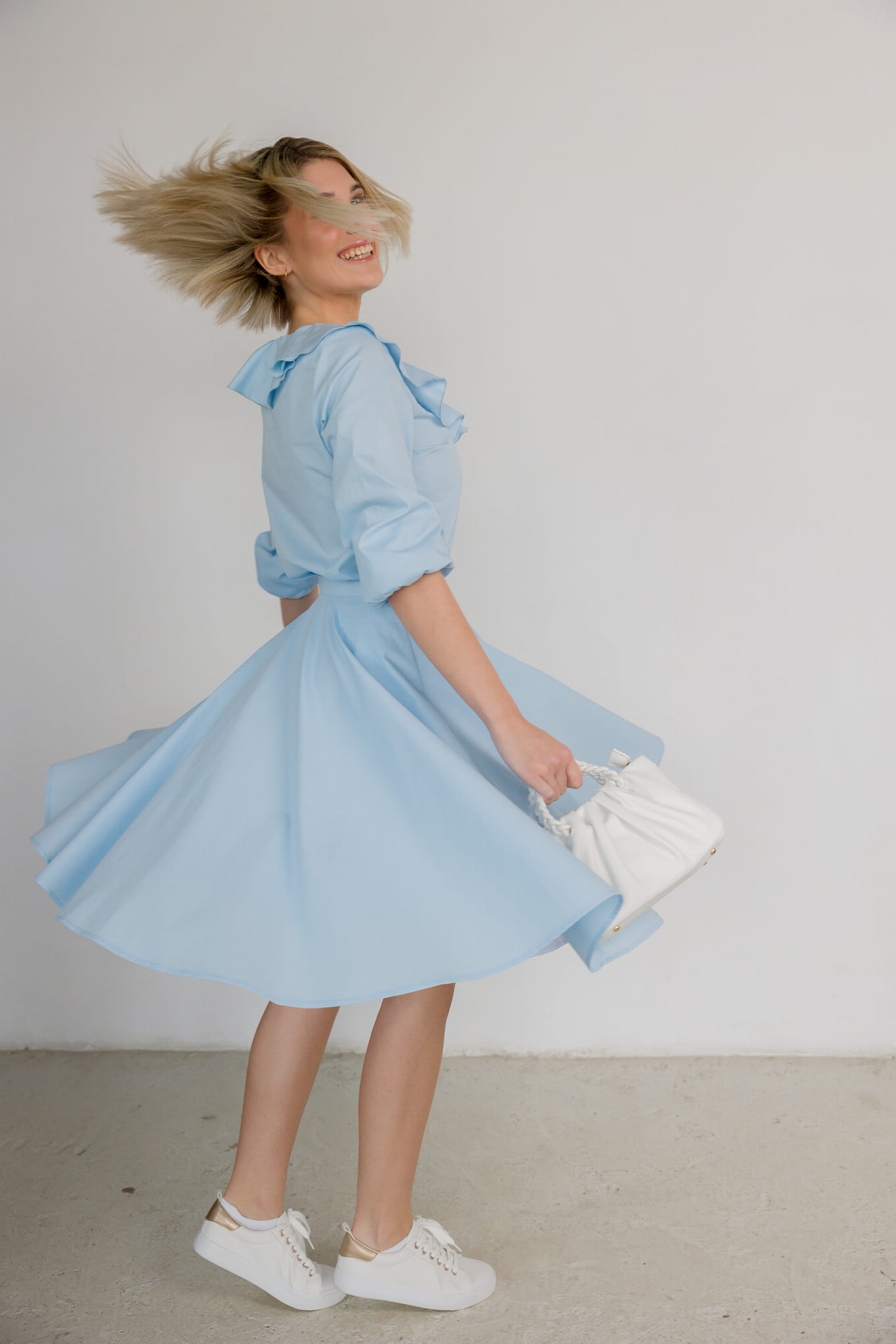 Aurelia to spódnica, która łączy elegancję, lekkość i komfort w jednym. Jej pełny krój w kształcie koła podkreśla sylwetkę nadając lekkości. Materiał subtelnie podkreśla kobiecą naturę, oferując niezrównany komfort przez cały dzień. To idealna spódnica na cieplejsze dni, kiedy liczy się zarówno styl, jak i swoboda.