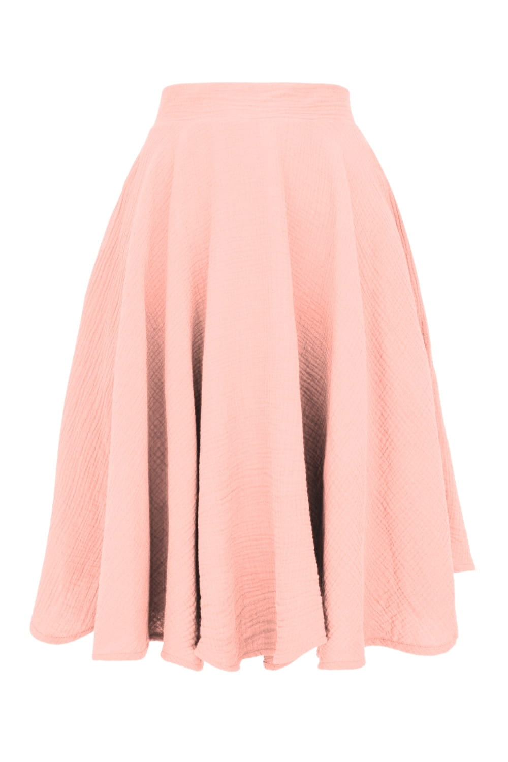 !!! WAŻNE - modelka ma na sobie spódniczkę wykonaną z innego materiału - gładkiej bawełny, który niebawem również pojawi się na stronie. Aby zobaczyć, jak wygląda struktura materiału "muślin bawełniany", przyjrzyj się pierwszemu zdjęciu. Modelka ma na sobie spódniczkę o długości do kolan - 60 cm.