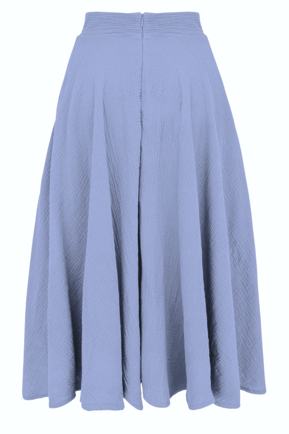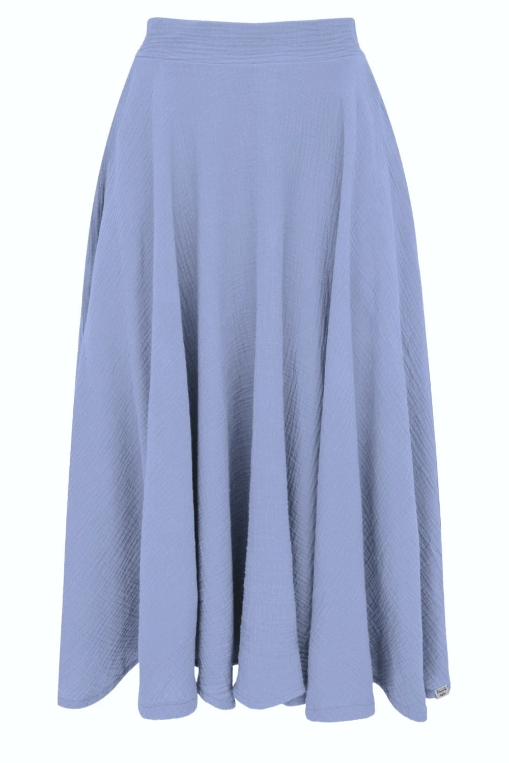 AURELIA - Faded Denim - klasyczna spódnica midi z pełnego koła