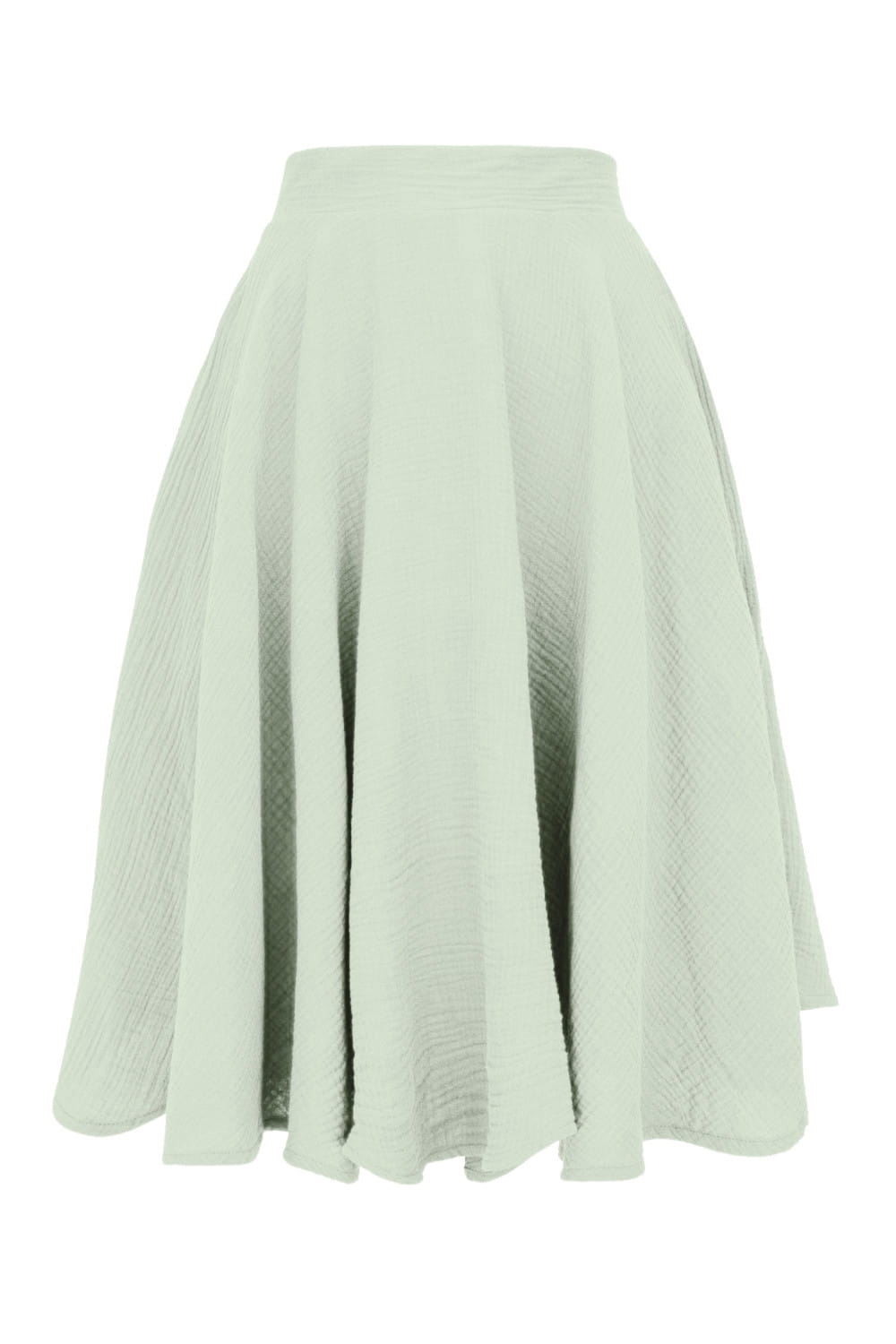 Spódnica została uszyta z muślinu bawełnianego – lekkiego, przewiewnego materiału, który doskonale sprawdzi się w cieplejsze dni. Materiał nie kurczy się po praniu. Szyjemy wyłącznie z certyfikowanych, oddychających materiałów. Nasz muślin bawełniany zawiera certyfikat OEKO TEX Standard 100, co gwarantuje bezpieczeństwo i najwyższą jakość.