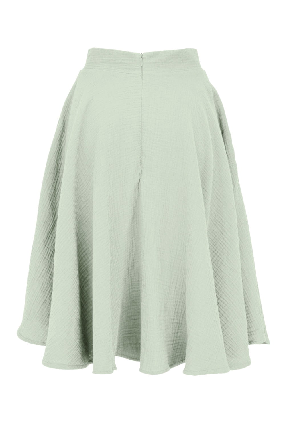 !!! WAŻNE - modelka ma na sobie spódniczkę wykonaną z innego materiału - gładkiej bawełny, który niebawem również pojawi się na stronie. Aby zobaczyć, jak wygląda struktura materiału "muślin bawełniany", przyjrzyj się pierwszemu zdjęciu. Modelka ma na sobie spódniczkę o długości do kolan - 60 cm.