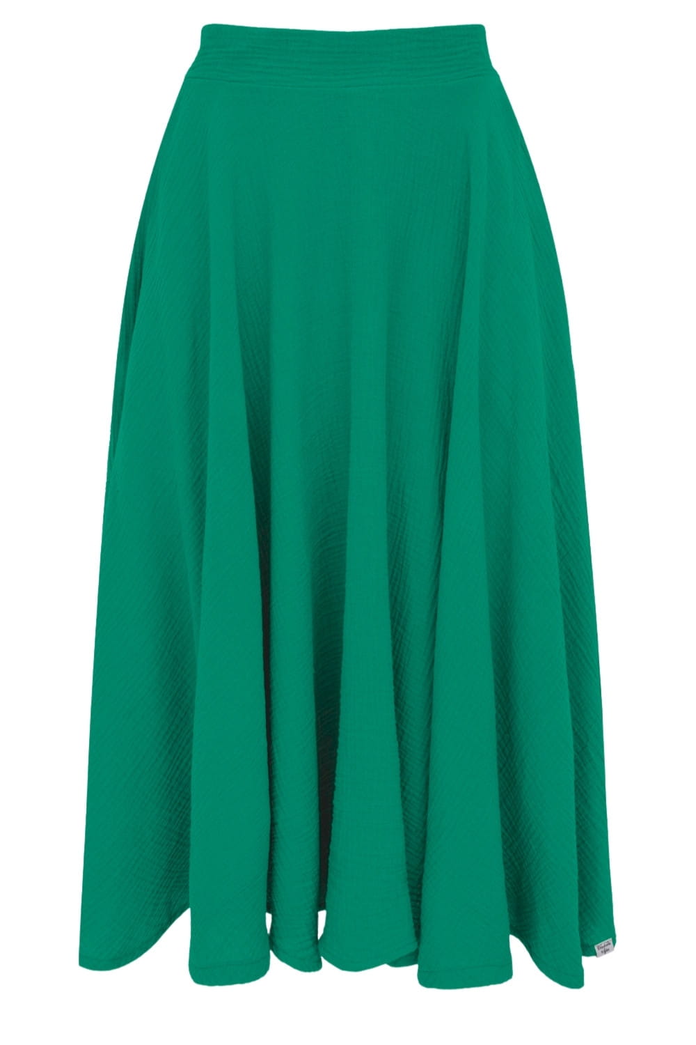 Spódnica została uszyta z muślinu bawełnianego – lekkiego, przewiewnego materiału, który doskonale sprawdzi się w cieplejsze dni. Materiał nie kurczy się po praniu. Szyjemy wyłącznie z certyfikowanych, oddychających materiałów. Nasz muślin bawełniany zawiera certyfikat OEKO TEX Standard 100, co gwarantuje bezpieczeństwo i najwyższą jakość.