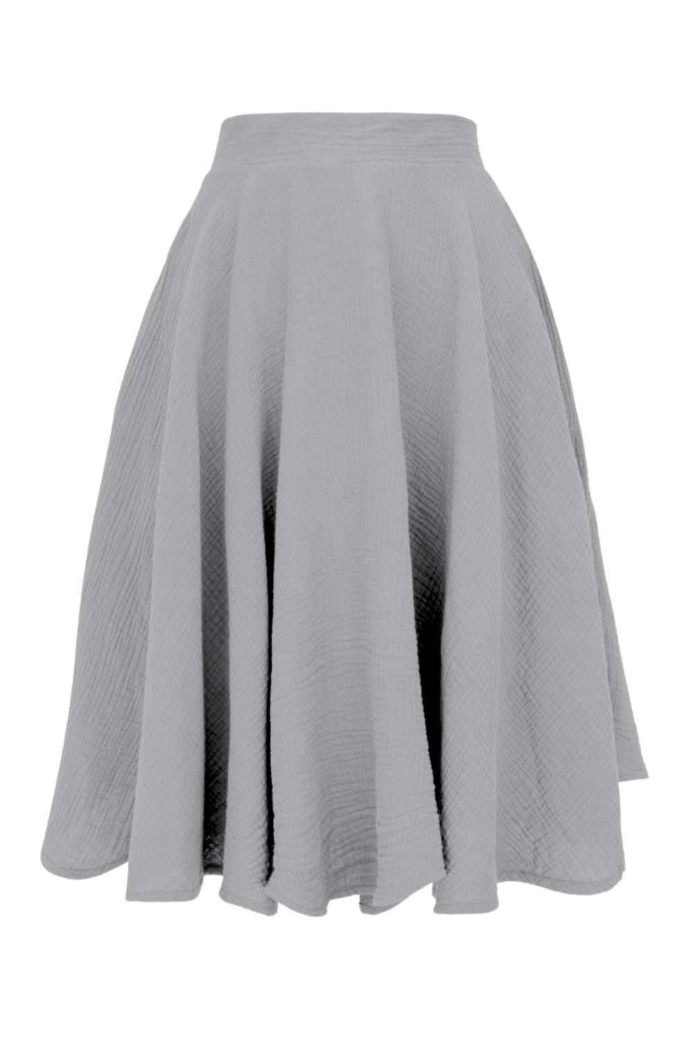 !!! WAŻNE - modelka ma na sobie spódniczkę wykonaną z innego materiału - gładkiej bawełny, który niebawem również pojawi się na stronie. Aby zobaczyć, jak wygląda struktura materiału "muślin bawełniany", przyjrzyj się pierwszemu zdjęciu. Modelka ma na sobie spódniczkę o długości do kolan - 60 cm.