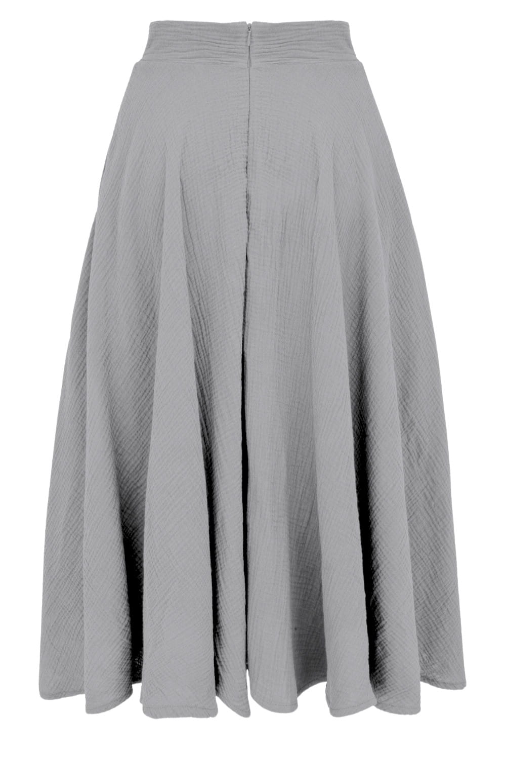 Spódnica została uszyta z muślinu bawełnianego – lekkiego, przewiewnego materiału, który doskonale sprawdzi się w cieplejsze dni. Materiał nie kurczy się po praniu. Szyjemy wyłącznie z certyfikowanych, oddychających materiałów. Nasz muślin bawełniany zawiera certyfikat OEKO TEX Standard 100, co gwarantuje bezpieczeństwo i najwyższą jakość.