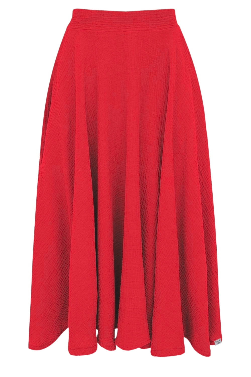 Spódnica została uszyta z muślinu bawełnianego – lekkiego, przewiewnego materiału, który doskonale sprawdzi się w cieplejsze dni. Materiał nie kurczy się po praniu. Szyjemy wyłącznie z certyfikowanych, oddychających materiałów. Nasz muślin bawełniany zawiera certyfikat OEKO TEX Standard 100, co gwarantuje bezpieczeństwo i najwyższą jakość.