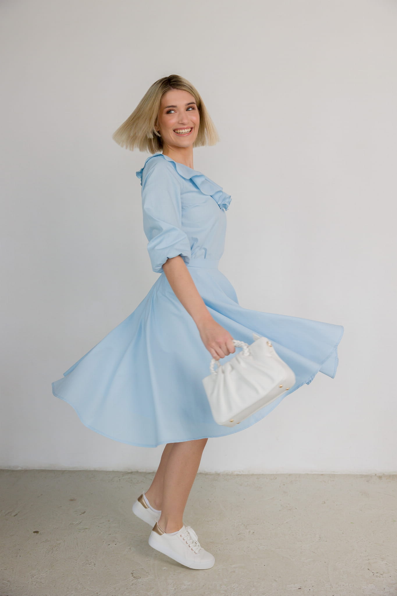 Aurelia to spódnica, która łączy elegancję, lekkość i komfort w jednym. Jej pełny krój w kształcie koła podkreśla sylwetkę nadając lekkości. Materiał subtelnie podkreśla kobiecą naturę, oferując niezrównany komfort przez cały dzień. To idealna spódnica na cieplejsze dni, kiedy liczy się zarówno styl, jak i swoboda.