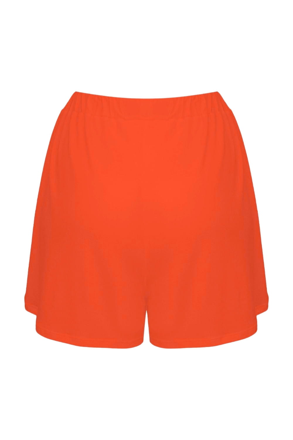 CELINE - Mandarin Red - bawełniane dzianinowe luźne spodenki z wygodną gumką w pasie