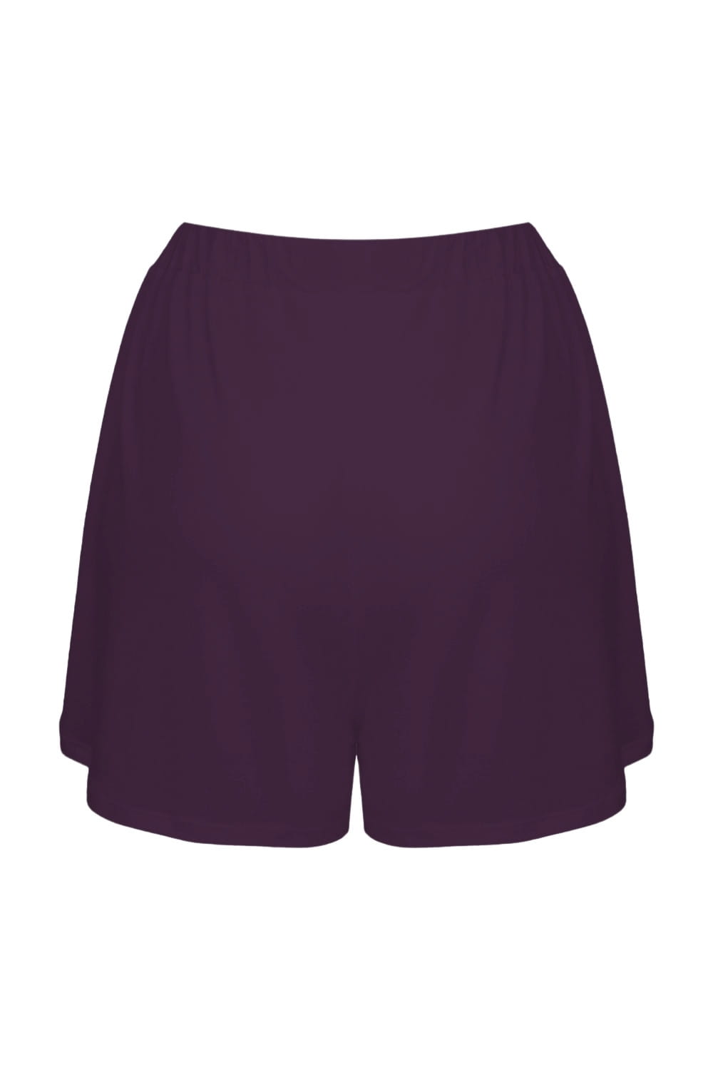 CELINE - Plum Purple - bambusowe dzianinowe luźne spodenki z wygodną gumką w pasie