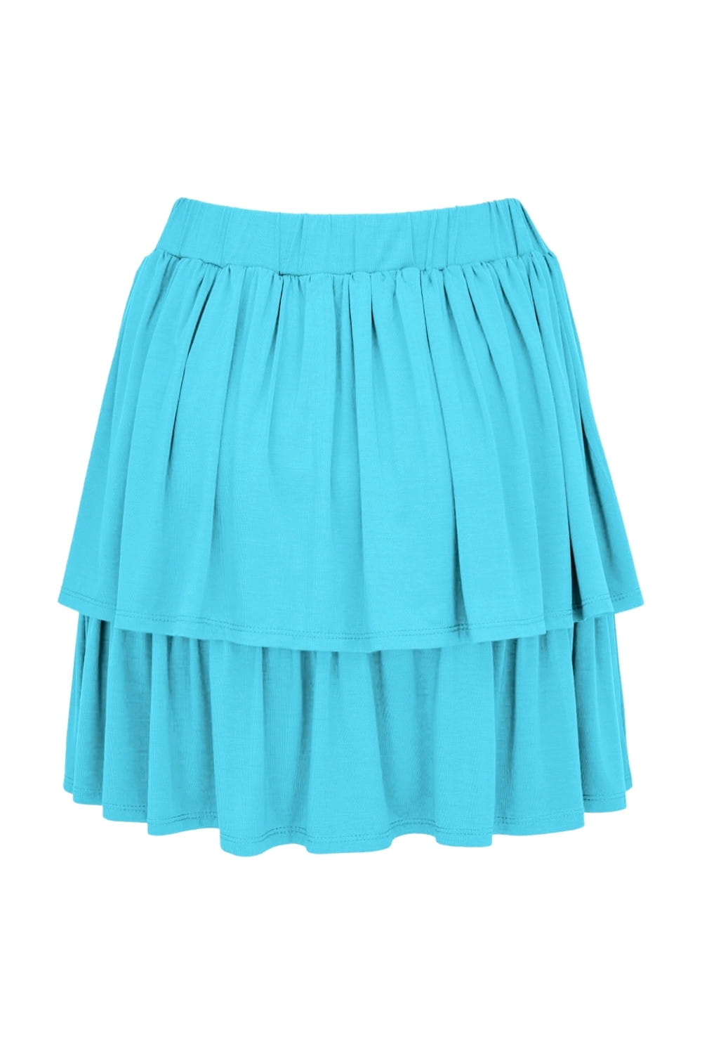 CLARISSA - Cyan Blue - wiskozowa spódnica z falban z elastyczną gumką w pasie