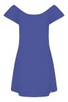 CORALIA - Amparo Blue - wiskozowa sukienka przed kolano z odkrytymi ramionami i rękawami z falbanką
