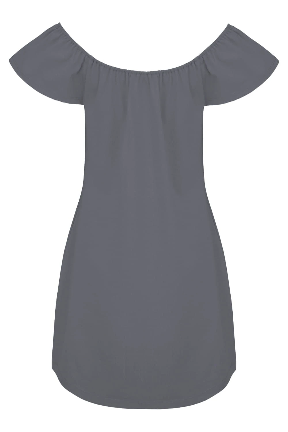 CORALIA - Castlerock - wiskozowa sukienka przed kolano z odkrytymi ramionami i rękawami z falbanką