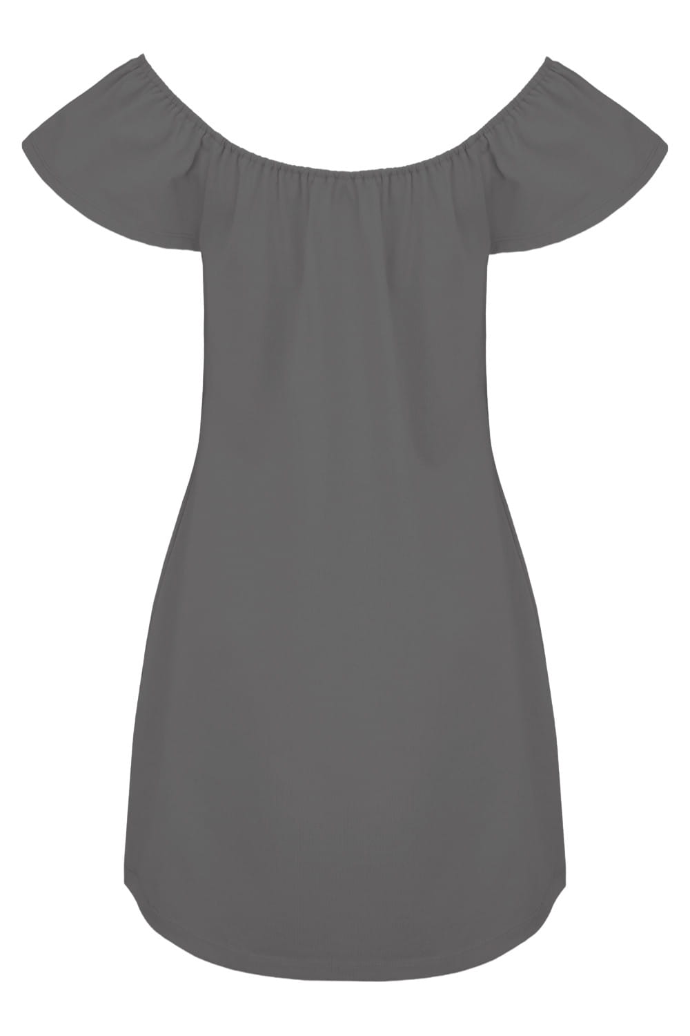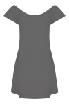 CORALIA - Charcoal Gray - wiskozowa sukienka przed kolano z odkrytymi ramionami i rękawami z falbanką
