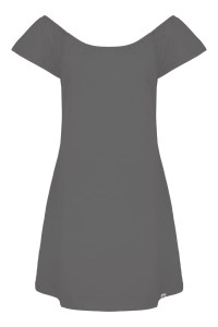 Fason CORALIA został zaprojektowany tak, by pasował na wiele typów figur. Delikatnie rozszerzający się ku dołowi krój nie opina, ale pięknie układa się na biodrach i udach. Odkryte ramiona subtelnie równoważą proporcje ciała.