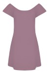 CORALIA - Grape Shake - wiskozowa sukienka przed kolano z odkrytymi ramionami i rękawami z falbanką
