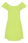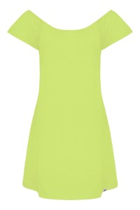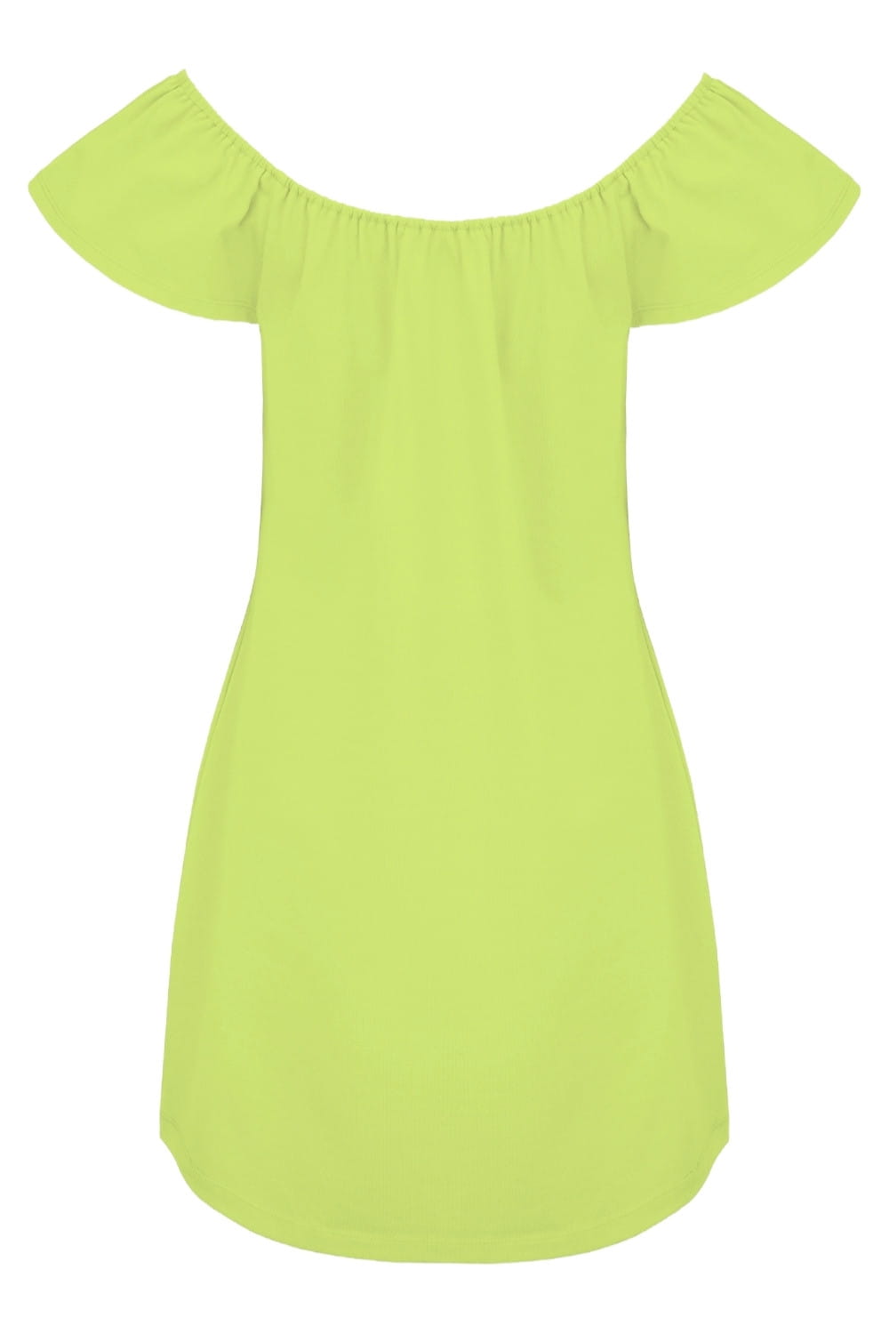 CORALIA - Green Glow - bawełniana sukienka przed kolano z odkrytymi ramionami i rękawami z falbanką