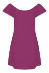 CORALIA - Raspberry Radiance - wiskozowa sukienka przed kolano z odkrytymi ramionami i rękawami z falbanką