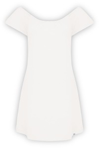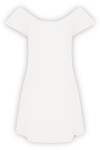Fason CORALIA został zaprojektowany tak, by pasował na wiele typów figur. Delikatnie rozszerzający się ku dołowi krój nie opina, ale pięknie układa się na biodrach i udach. Odkryte ramiona subtelnie równoważą proporcje ciała.