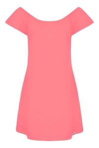 Fason CORALIA został zaprojektowany tak, by pasował na wiele typów figur. Delikatnie rozszerzający się ku dołowi krój nie opina, ale pięknie układa się na biodrach i udach. Odkryte ramiona subtelnie równoważą proporcje ciała.