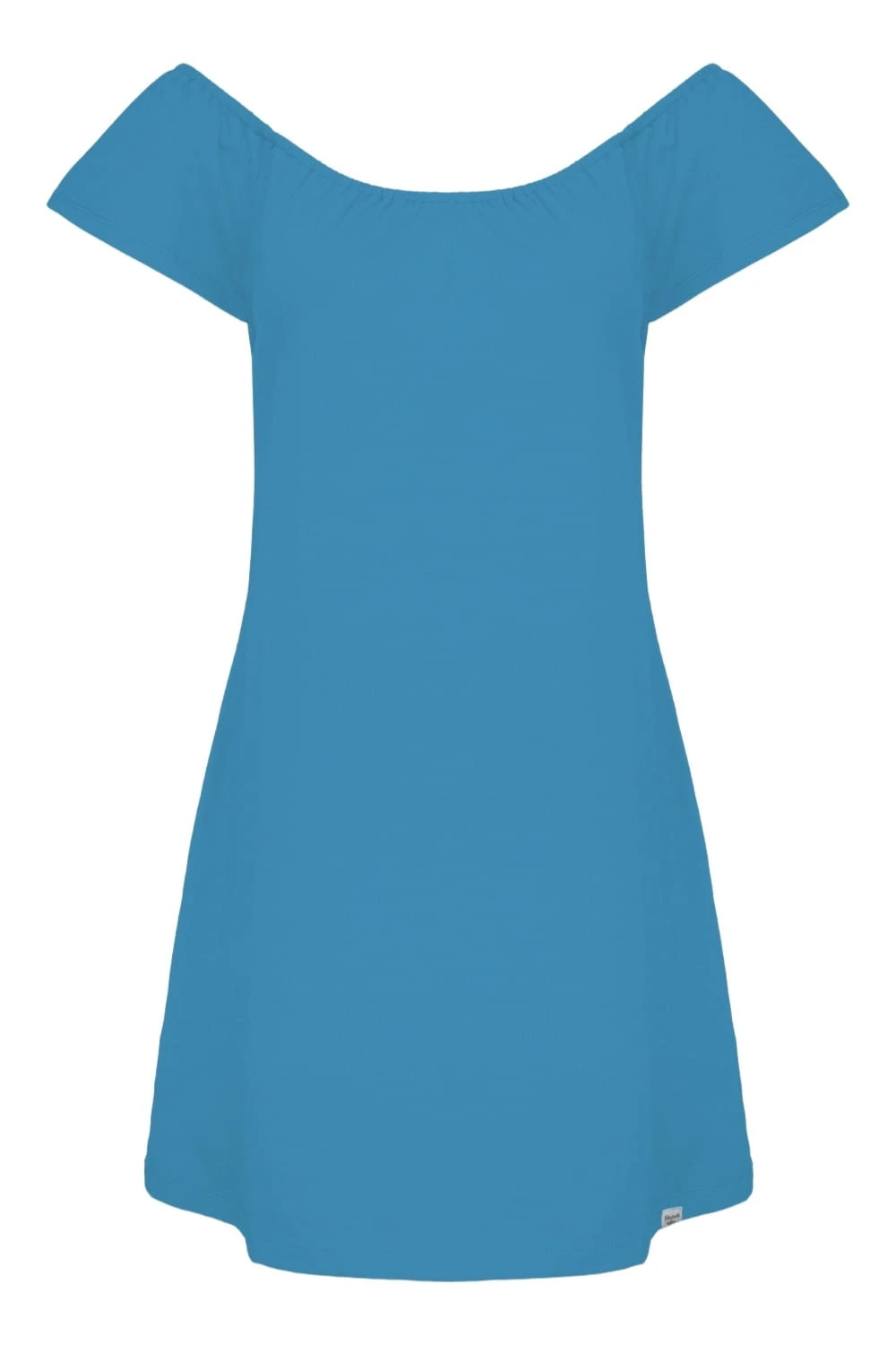 CORALIA - Vivid Blue - bawełniana sukienka przed kolano z odkrytymi ramionami i rękawami z falbanką