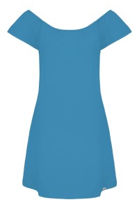 Fason CORALIA został zaprojektowany tak, by pasował na wiele typów figur. Delikatnie rozszerzający się ku dołowi krój nie opina, ale pięknie układa się na biodrach i udach. Odkryte ramiona subtelnie równoważą proporcje ciała.