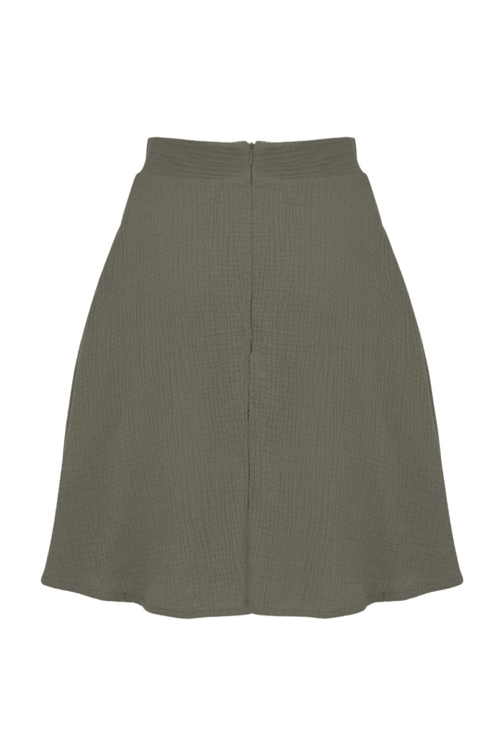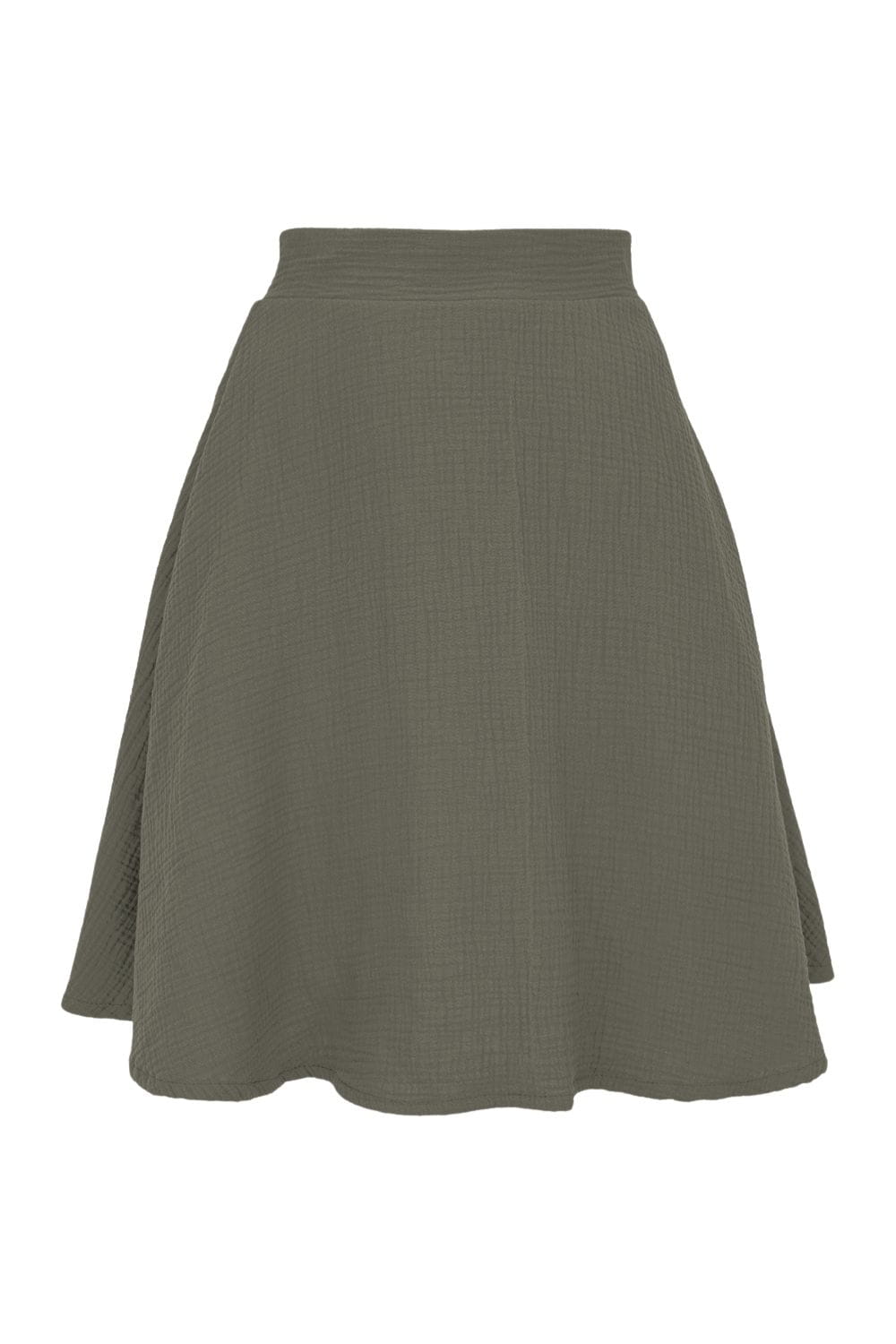 DARLA - Dusty Olive - muślinowa spódnica przed kolano z połowy koła