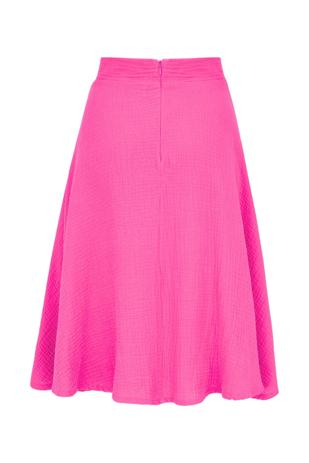 DARLA - Fuchsia Purple - muślinowa spódnica do kolan z połowy koła