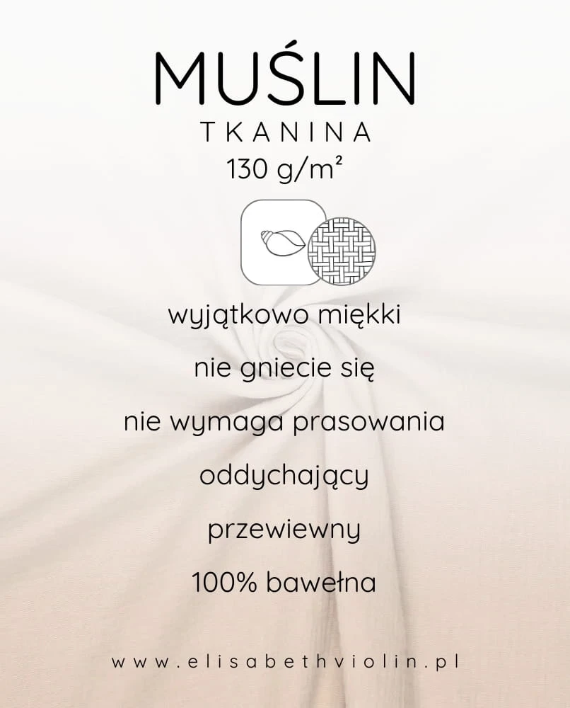 !!! WAŻNE - modelka ma na sobie spódniczkę wykonaną z innego materiału - gładkiej bawełny, który niebawem również pojawi się na stronie. Aby zobaczyć, jak wygląda struktura materiału "muślin bawełniany", przyjrzyj się pierwszemu zdjęciu.