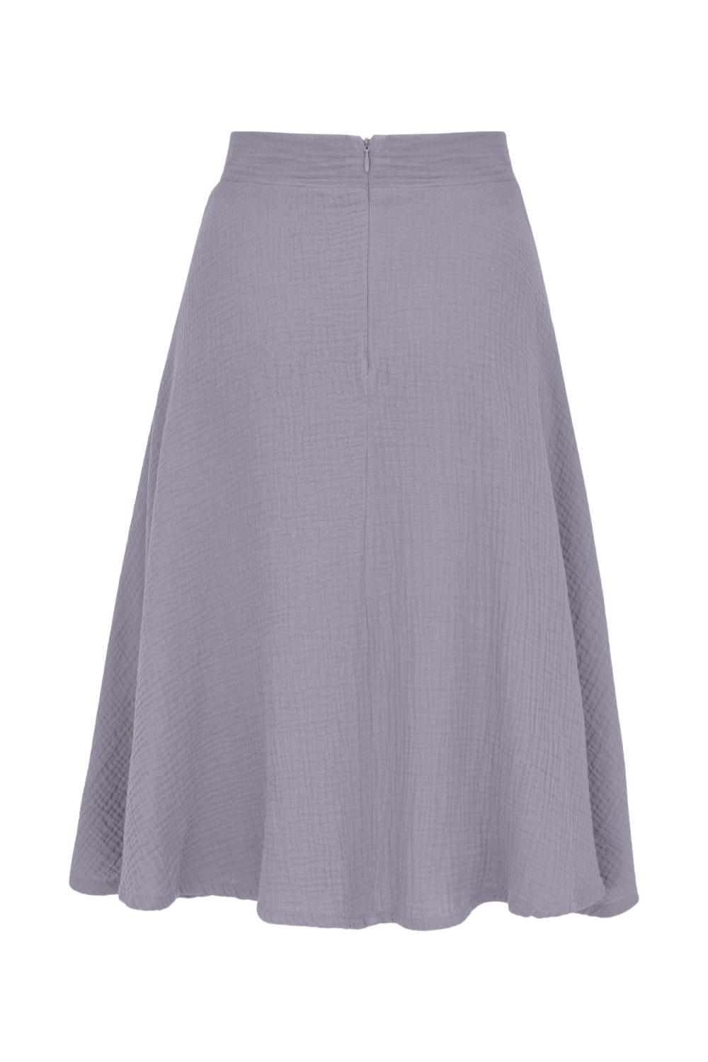 DARLA - Minimal Gray - muślinowa spódnica do kolan z połowy koła