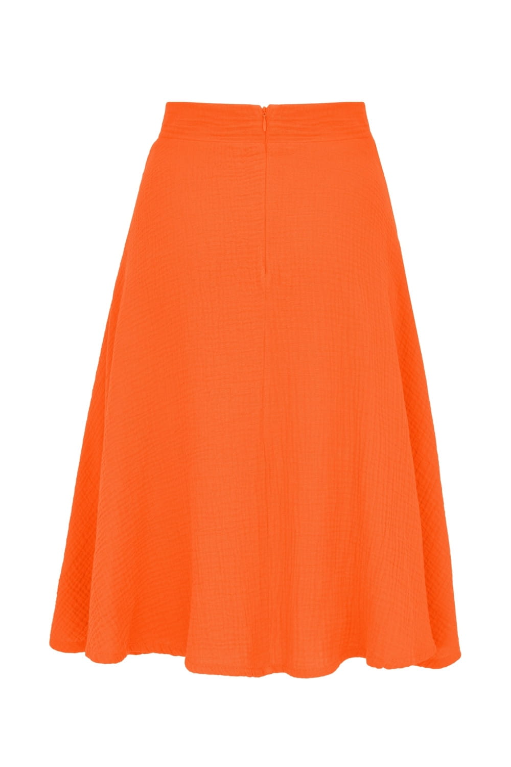 DARLA - Persimmon Orange - muślinowa spódnica do kolan z połowy koła
